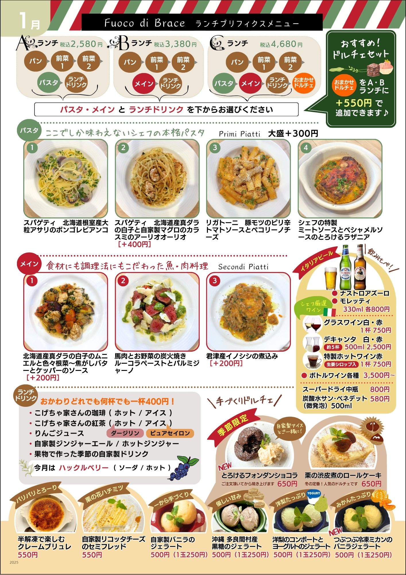 1月lunchプリフィクスメニューのお知らせです。 1月は冬におすすめなメニューが多数登場! 他ではなかなか食べられないジビエ(イノシシの煮込み)もご用意しました。 そして12月に引き続き、ディナータイムも一部営業予定で …