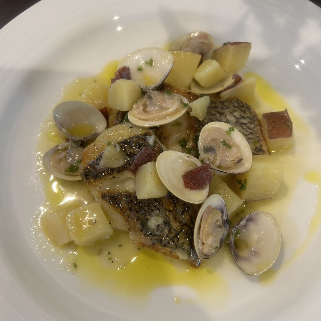 ほかにも、メイン料理では、九十九里産ハマグリとホクホクのポテトの組み合わせが新しい【本日の鮮魚 九十九里産ハマグリとポテトのソース】や、