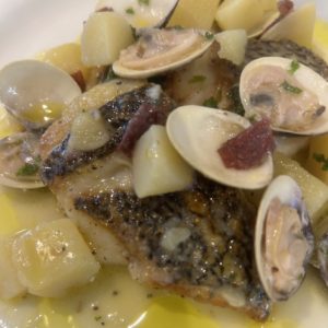 ▼本日の鮮魚 九十九里産ハマグリとポテトのソース