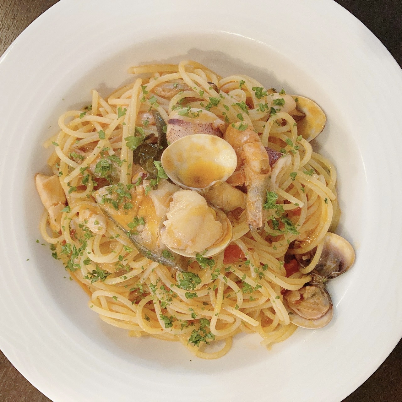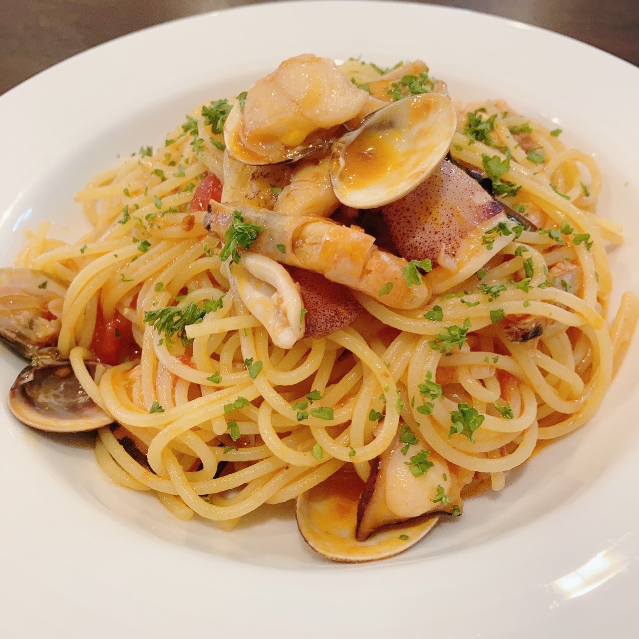 まずは、定番スパゲッティ【ぺスカトーラ~新鮮魚介のトマトソース】。