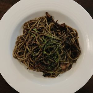 アルデンテに茹で上げたパスタにたっぷり絡めたイカスミは、手間暇かけた完全自家製。