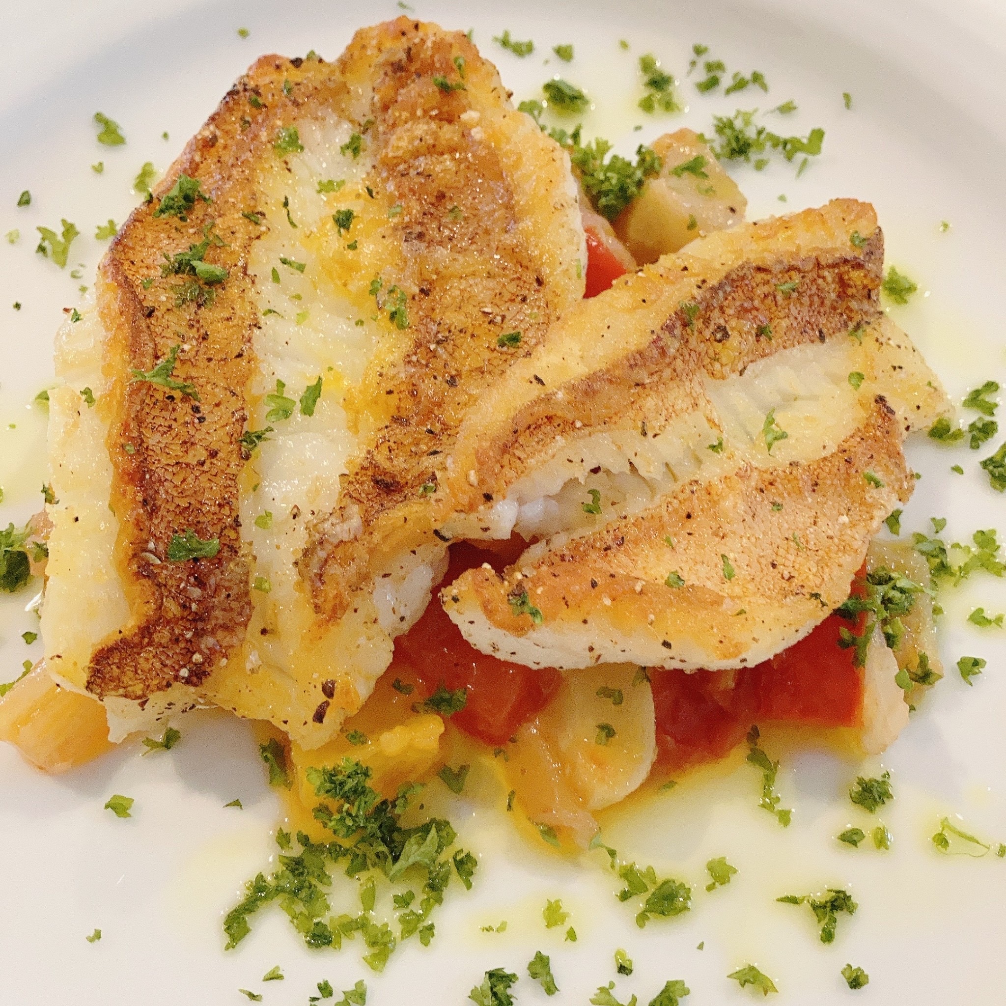 ▼本日の鮮魚のソテー 冷たいカポナータ添え