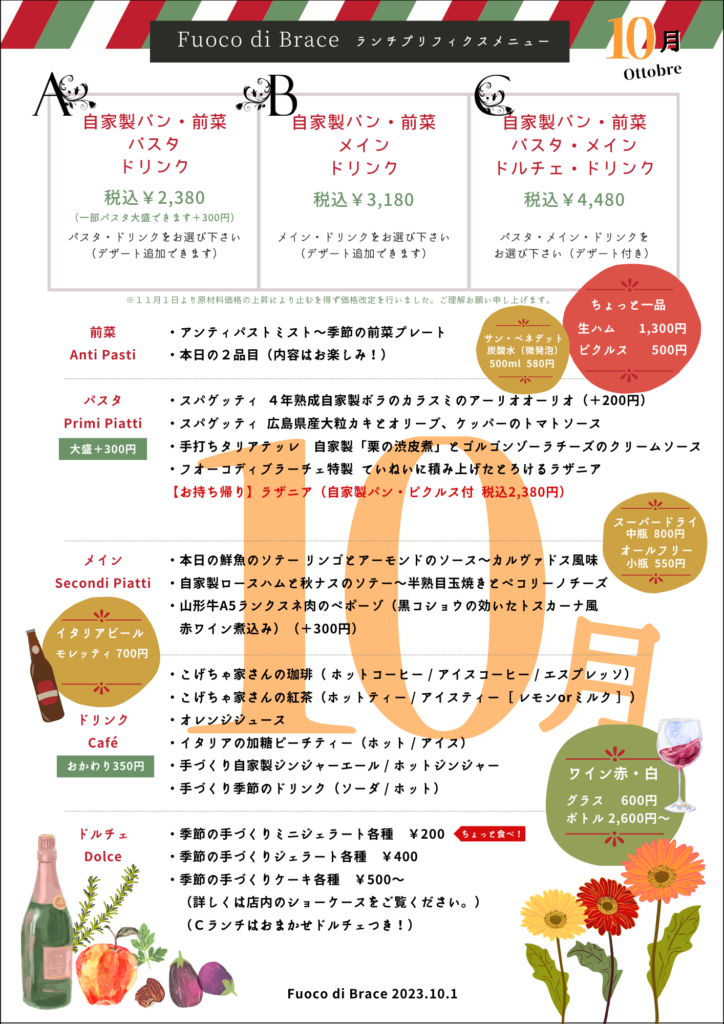 10月lunchプリフィクスメニューのお知らせです。