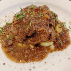 ▼山形牛A5ランクスネ肉のペポーゾ(黒コショウの効いたトスカーナ風赤ワイン煮込み)(+300円)