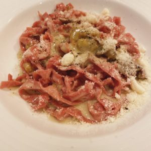 ▼手打ちタリアテッレ 自家製「栗の渋皮煮」とゴルゴンゾーラチーズのクリームソース