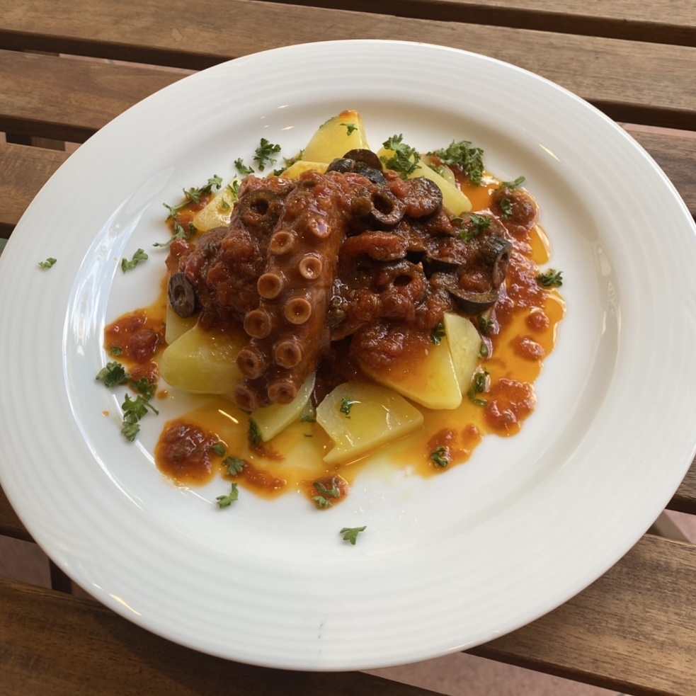 サンタ〜ル〜チーア〜🎶で有名なナポリのルチア地区の漁師の料理。タコは北海道から直送。柔らかくタコの旨みたっぷり。