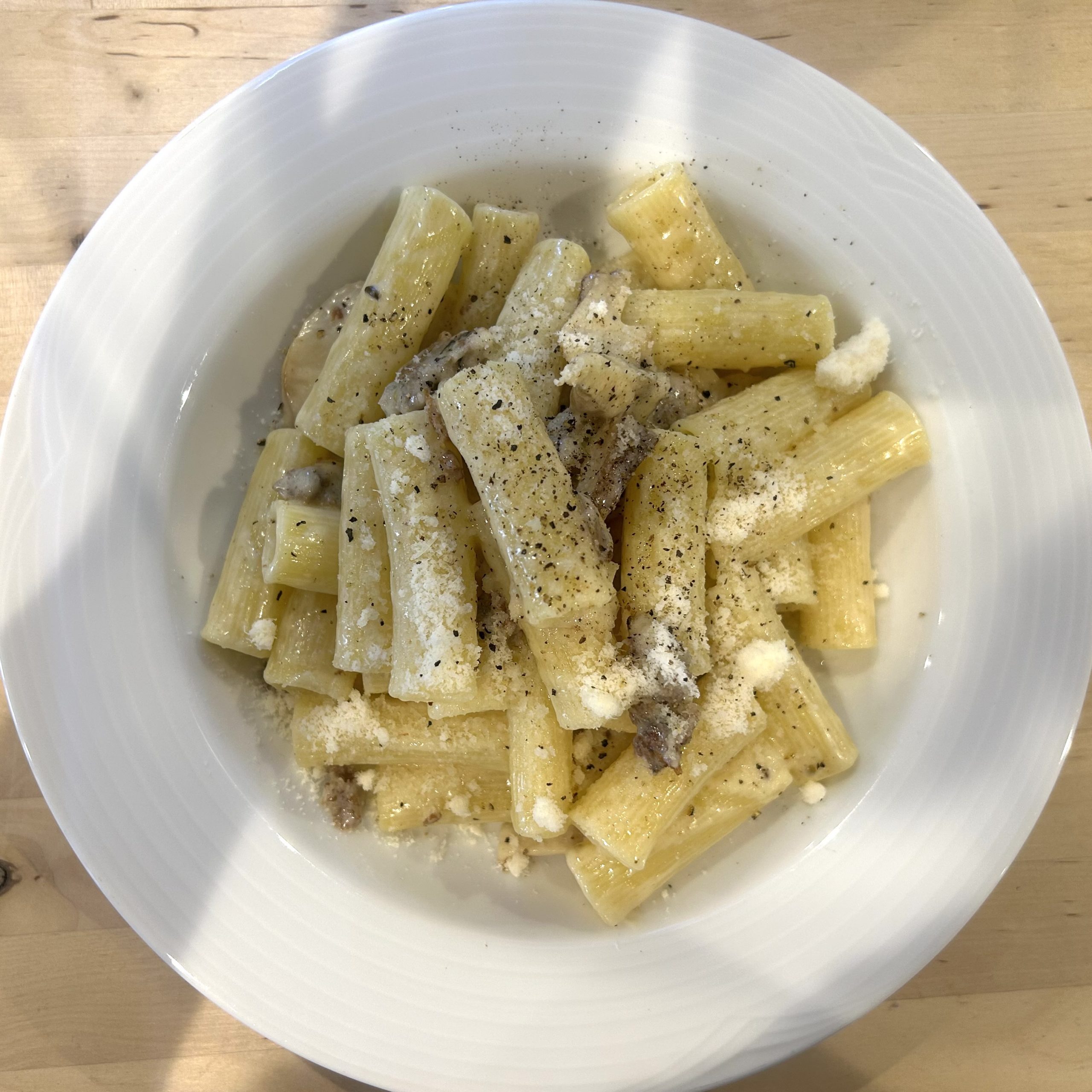 ▼リガトーニ 自家製生ソーセージと色々きのこのクリームソース