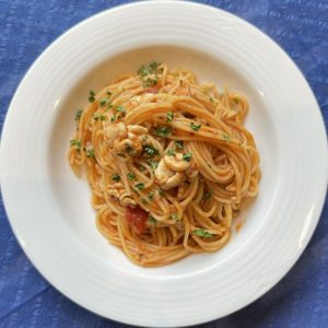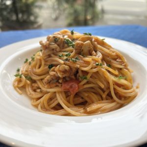 ▼スパゲティ 北海道産タラの白子のピリ辛トマトソース[+200円]
