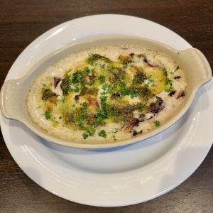▼広島県産大粒カキと自家製ロースハム、ウイキョウペーストの熱々グラタン[+200円]