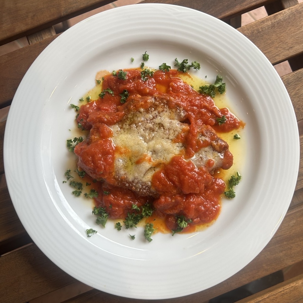▼スペイン産ガリシア栗豚のカツレツ~モデナ風(軽いトマト煮)