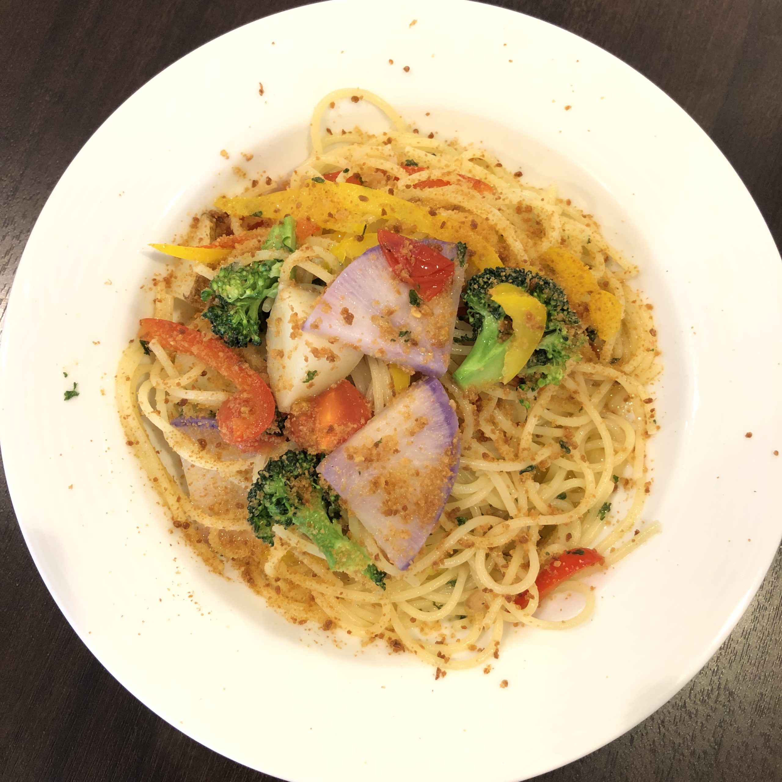 ▼スパゲッティ 自家製マグロのカラスミと冬野菜のアーリオオーリオ