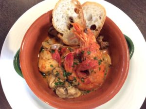 <メイン料理>魚介類の軽いトマト煮(ズッパディペッシェ/魚介のスープ)