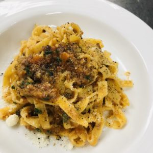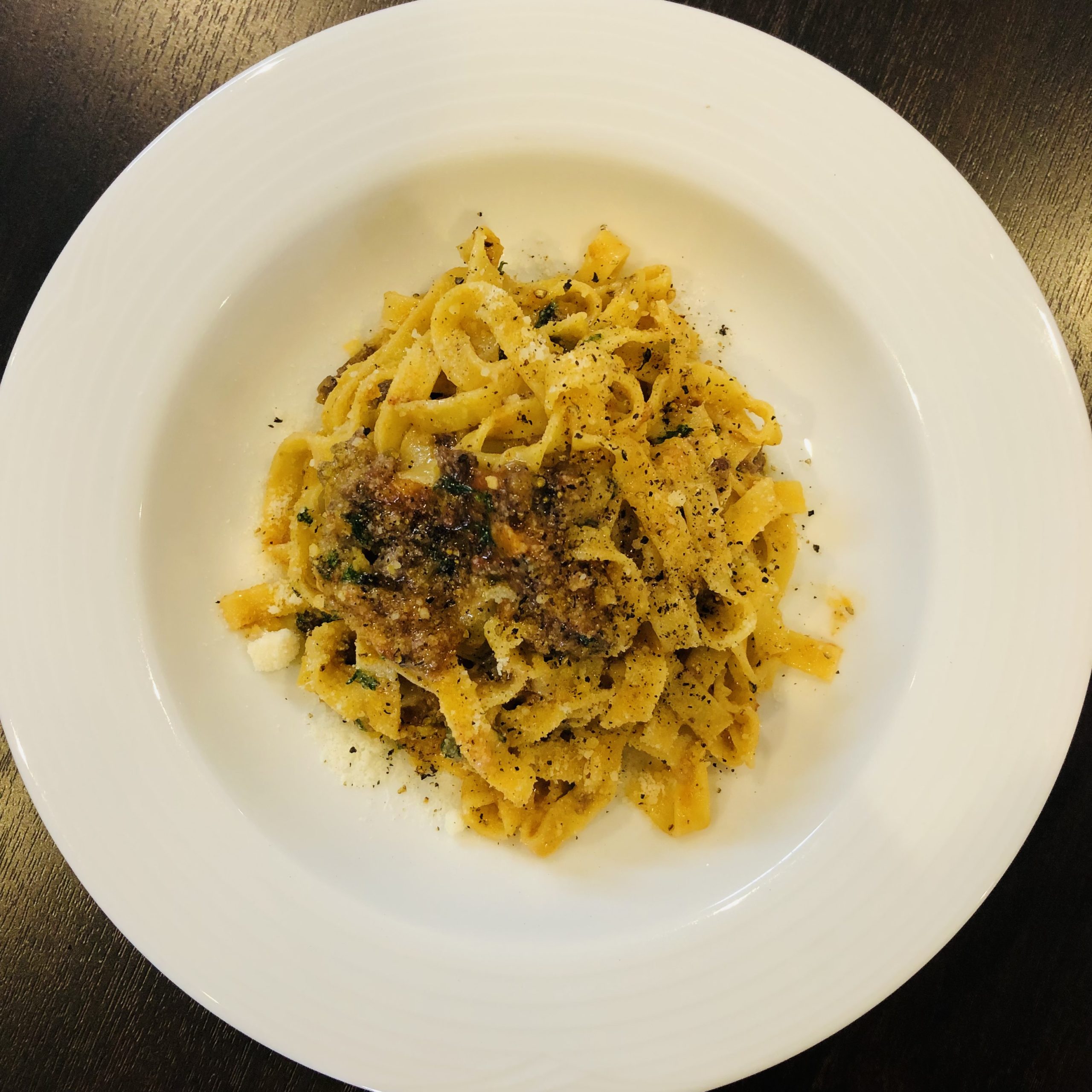 ▼手打ちタリアテッレ 長崎県諫早産イノシシのラグー(煮込みソース)