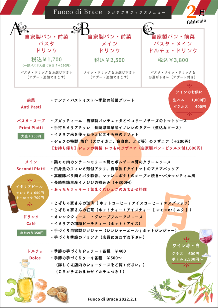 今月は、ご好評いただいている自家製ラザニアの魚介バージョンが登場!