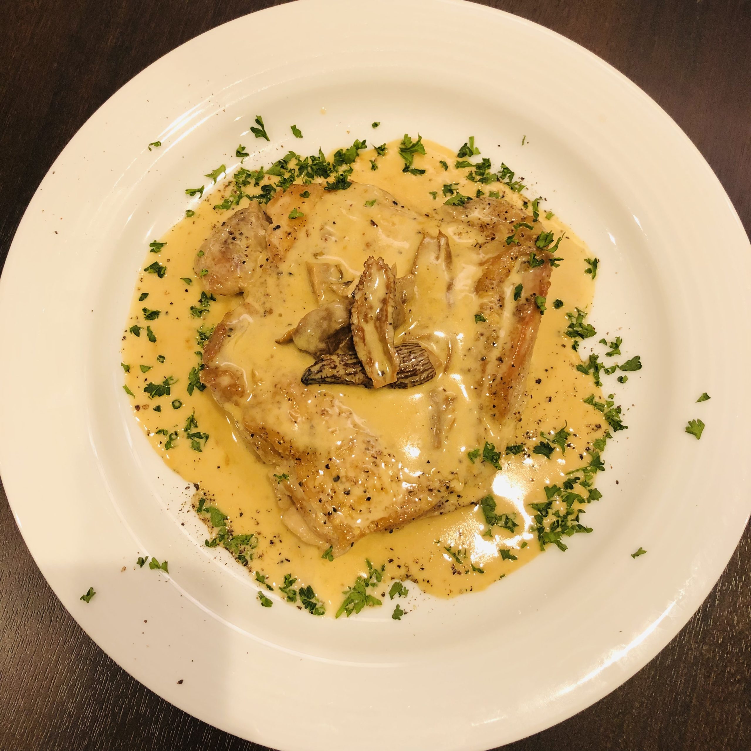 ▼鶏モモ肉のソテー~モリーユ茸とポルチーニ茸のクリームソース