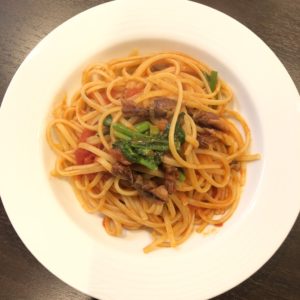 ホタルイカは、これまた旬の菜の花と合わせて春らしいパスタに。