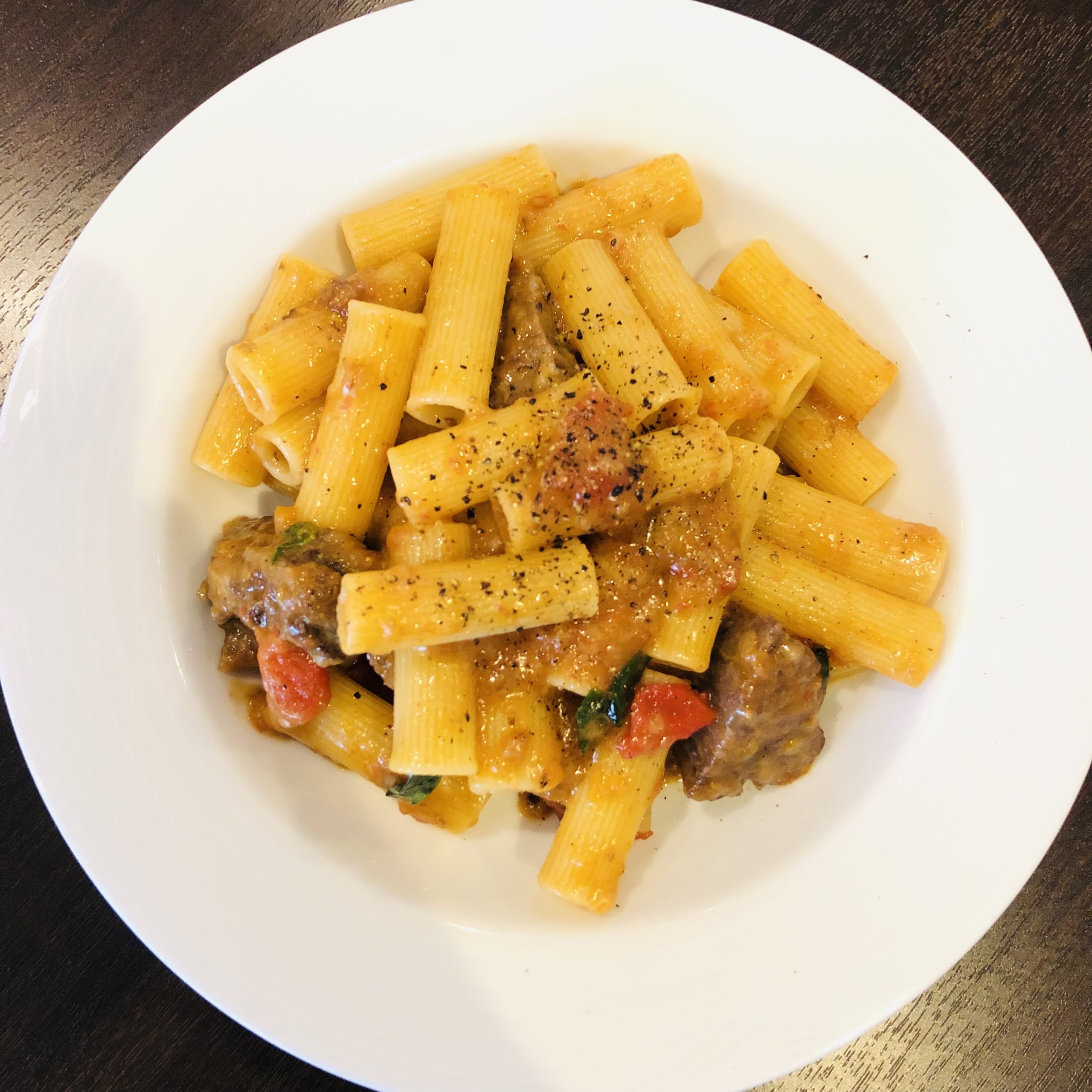 ▼リガトーニ <ナポリ風>ジェノベーゼ~牛ホホ肉の煮込みソース(+150円)