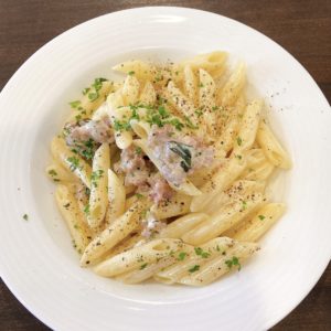 ▼ペンネ ハーブたっぷり自家製生ソーセージのクリームソース