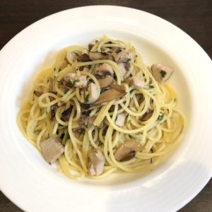 ▼スパゲッティ 戻りカツオと色々きのこのアーリオオーリオ