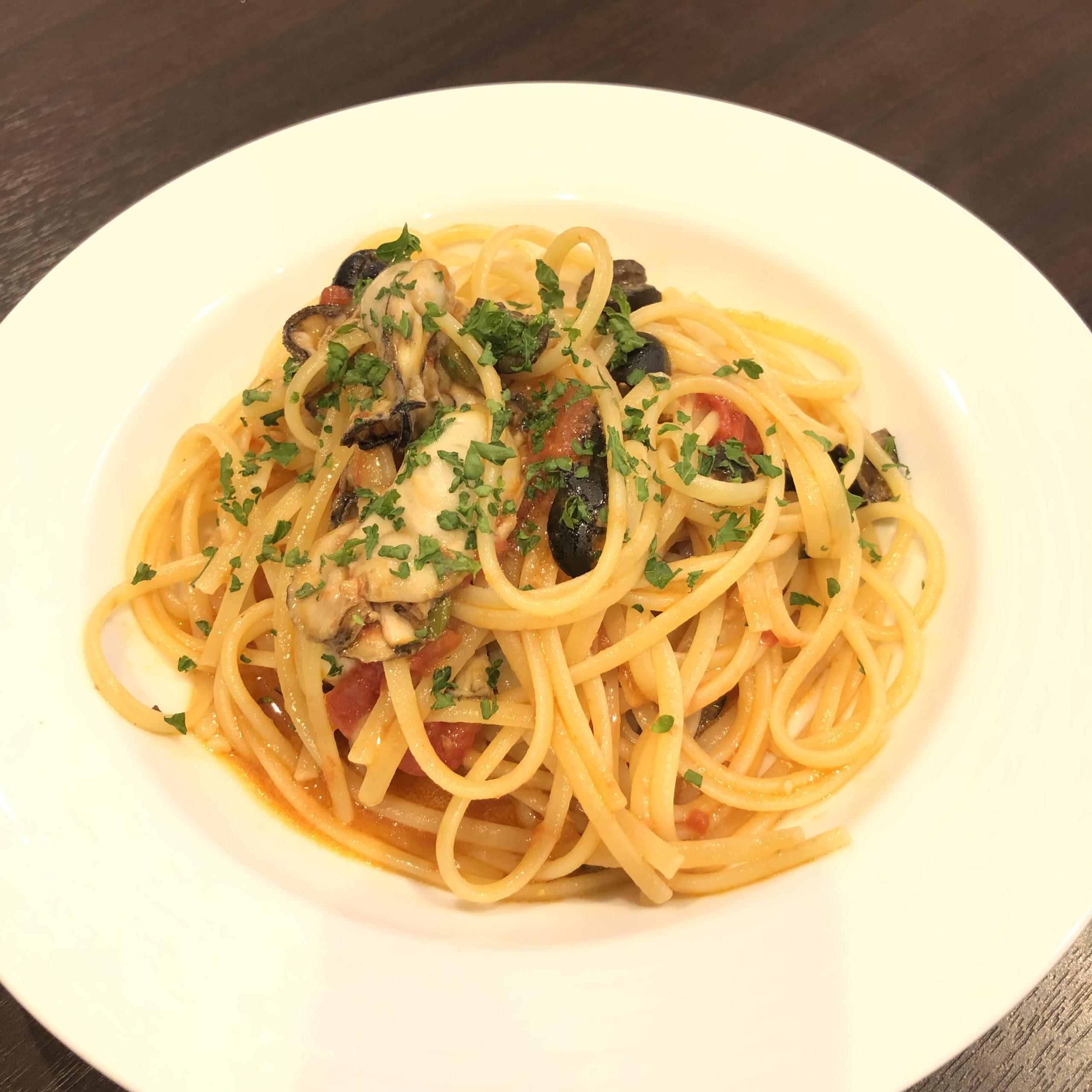 ▼リングイネ 牡蠣とオリーブ、ケッパーのトマトソース(+200円)