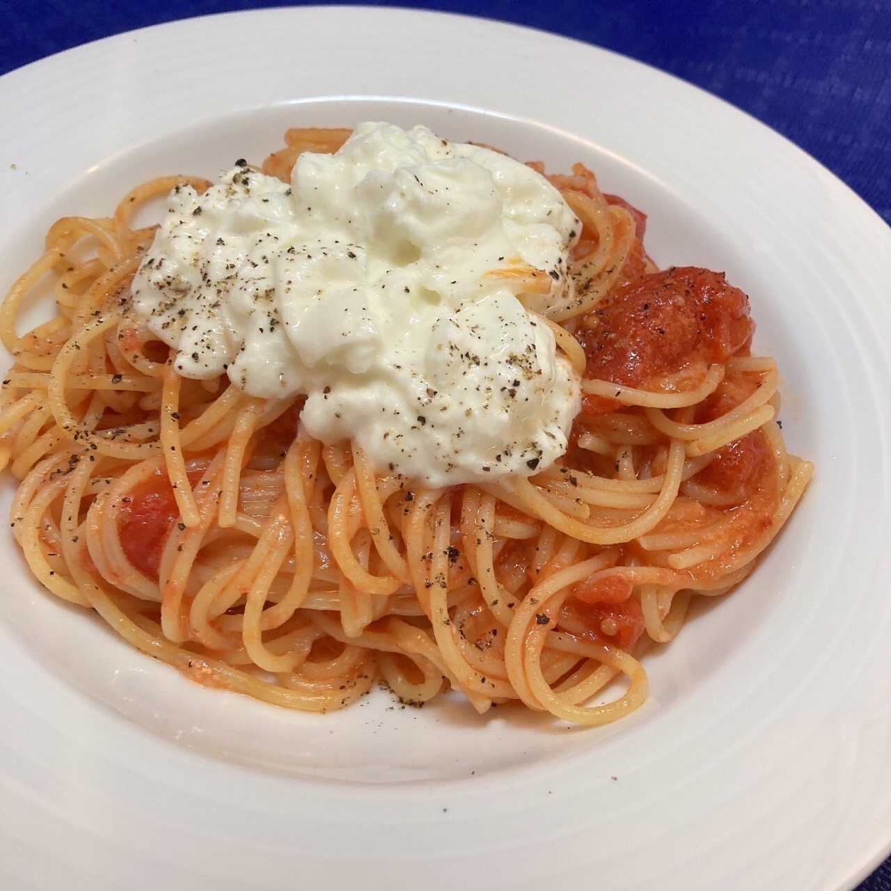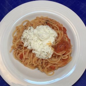 ▼スパゲッティ 糸引きブッラータチーズのトマトソース