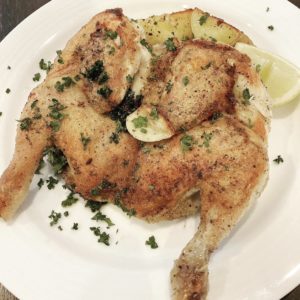 ▼フランス産ひな鶏丸々1羽のカリカリ焼き ディアボラ風(約500g)