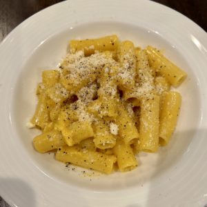 スパゲッティではなくショートパスタを使い、ローマで食べた味を再現してみました。