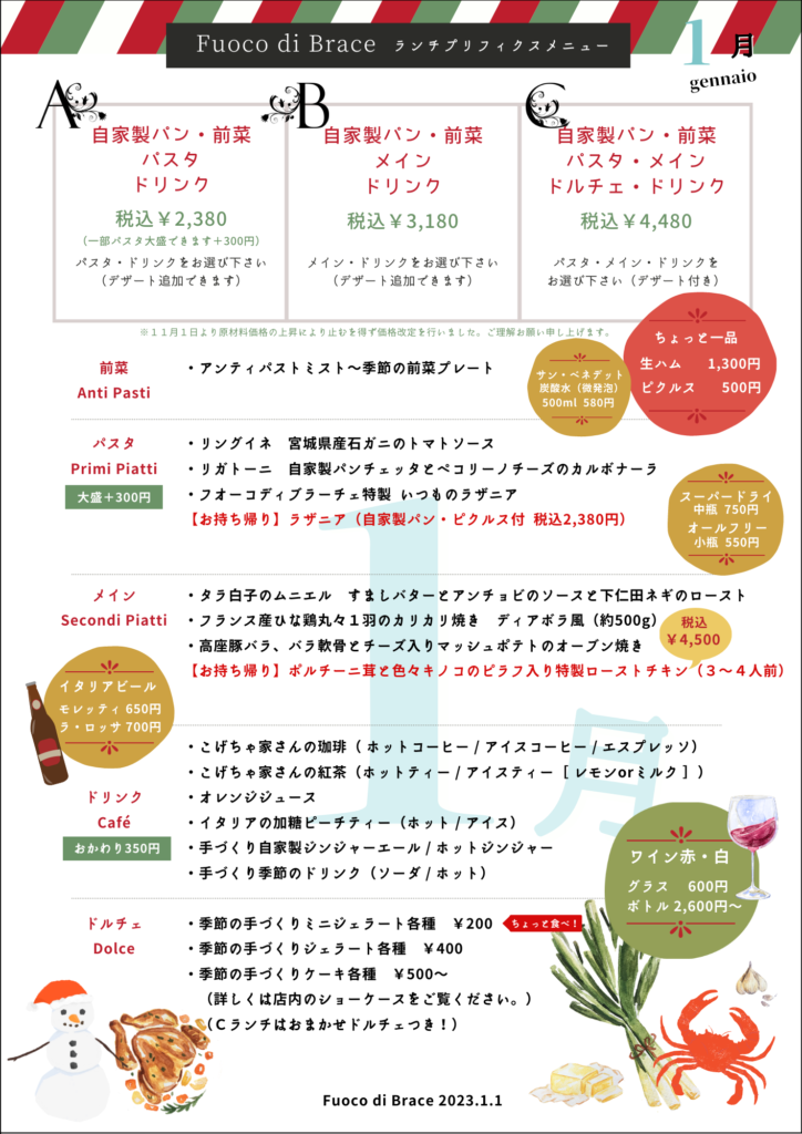 かねてより続いていた原材料等の高騰により、11月1日よりすべてのランチメニューを一律580円値上げさせていただきました。