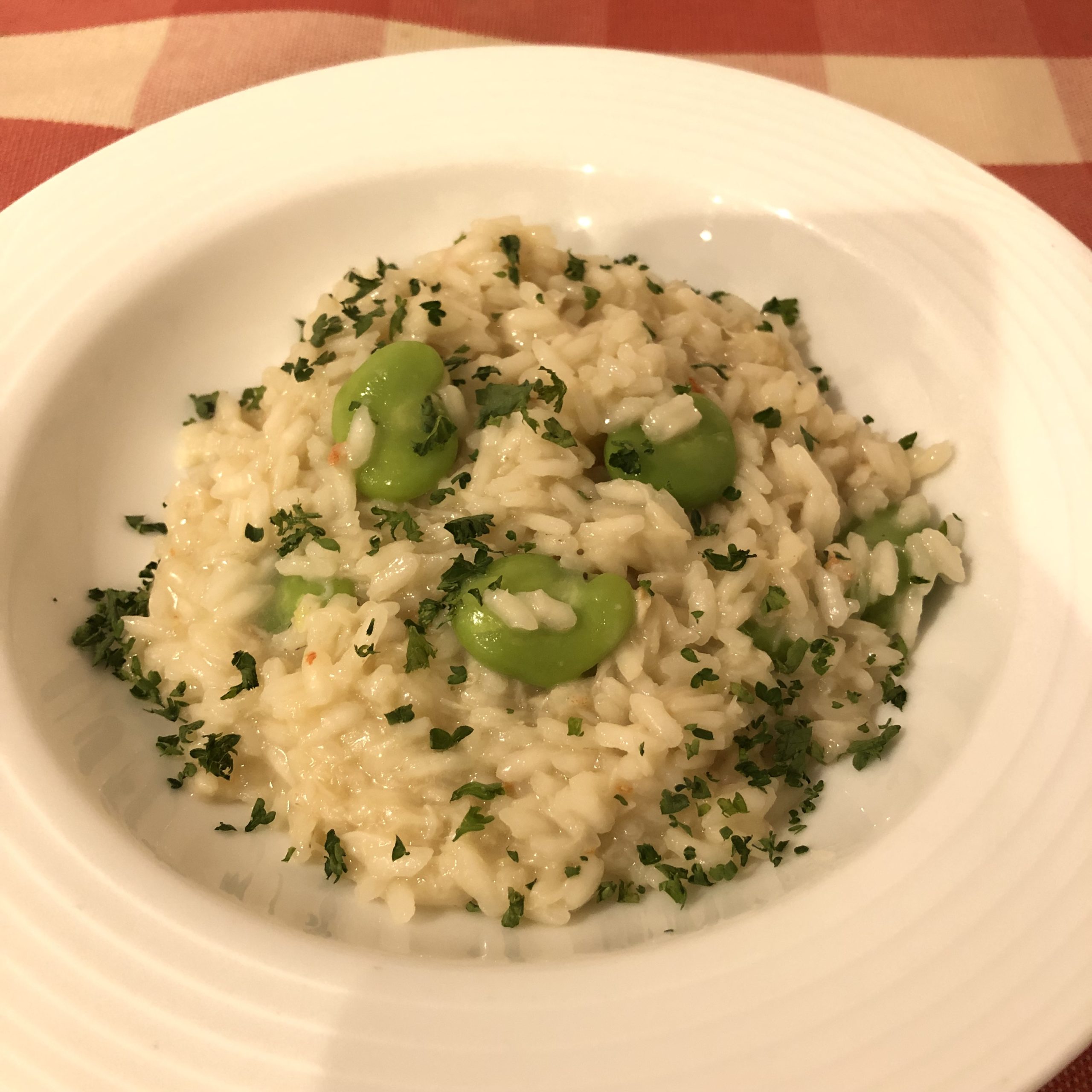 ホクホクの大粒そら豆と、ズワイガニのダシをたっぷり吸ったイタリア米は相性抜群!